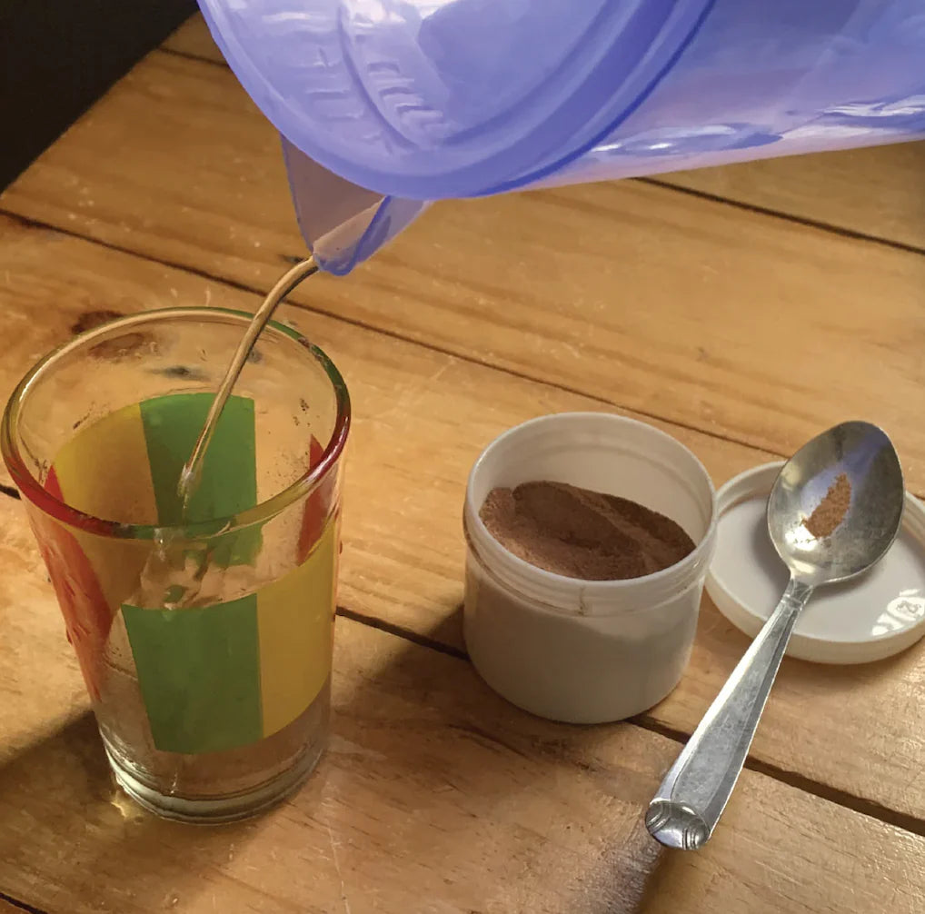 Use a small teaspoon of Comprex powder, mix it with a glass of warm water until fully dissolved, and drink the mixture.